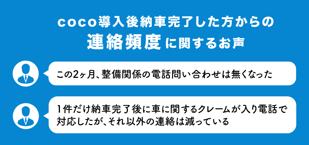 これらを除く2店は「納車完了した方からの整備に関する問い合わせは負担ではない」と回答されました。
