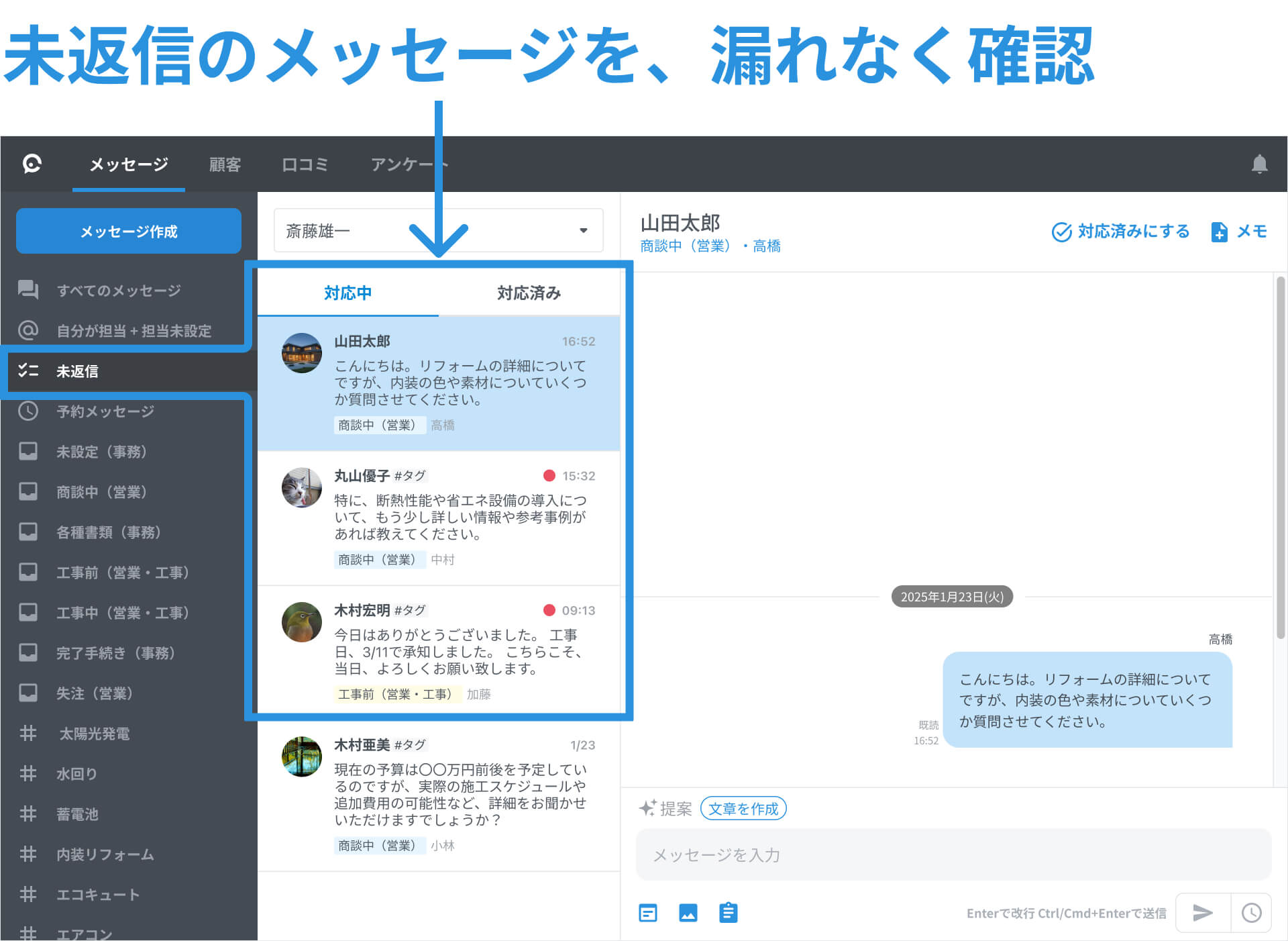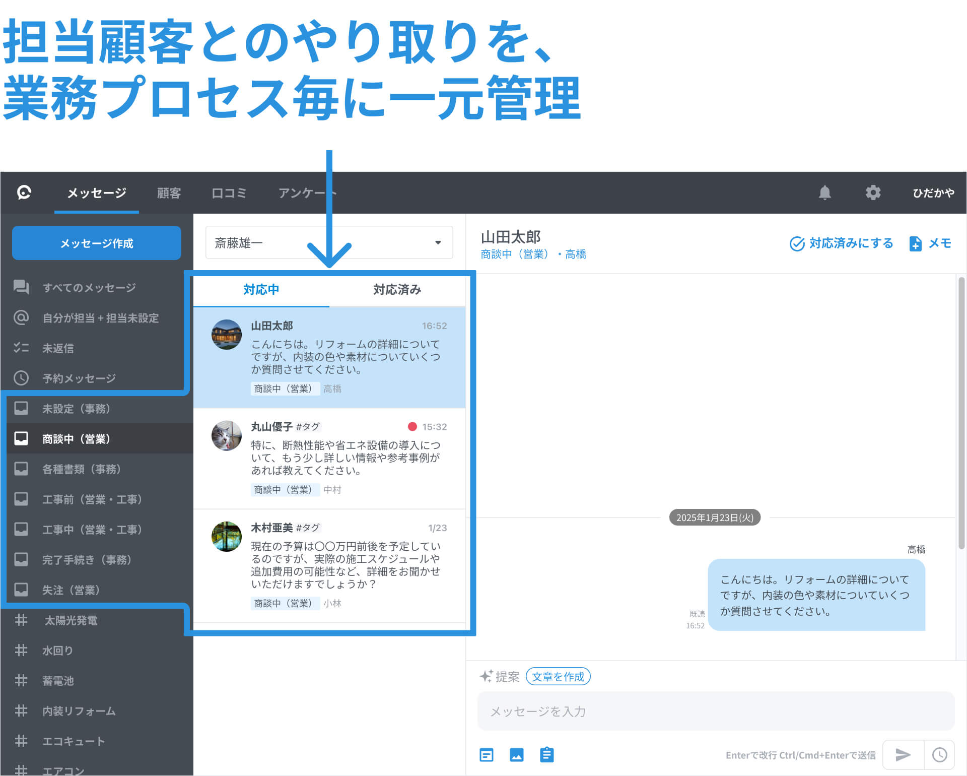 もちろん、顧客への迅速な返信は徹底していますが、適切な時間帯での対応が可能になりました。また、自分の担当顧客とのやり取りを一元管理できるようになり、そういった側面でも業務の効率化も実現しています。